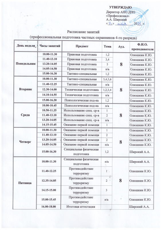 3. Профессиональная подготовка охранников 4-го разряда.